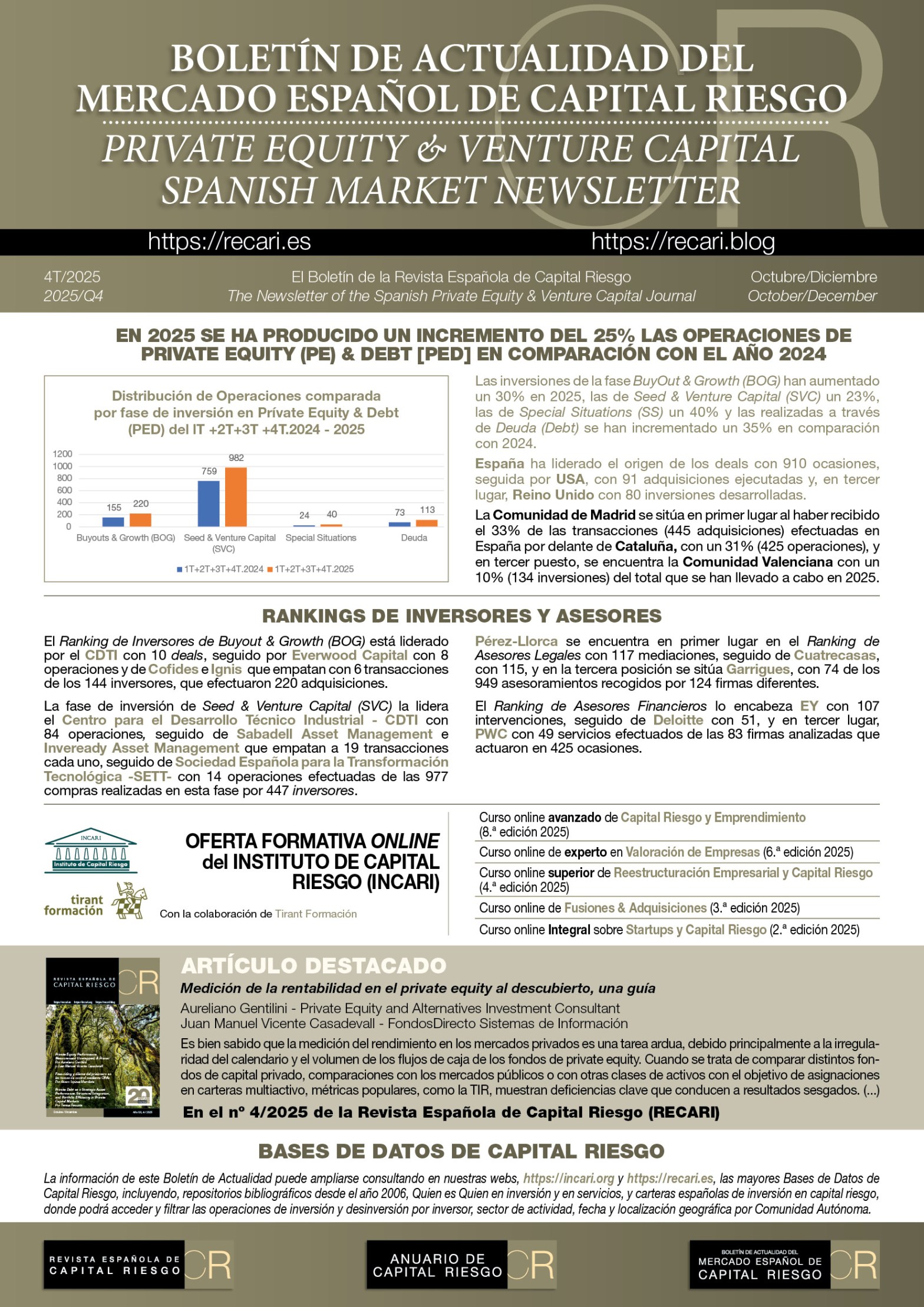INVERSIONES ACUMULADAS Y ASESORES EN CAPITAL RIESGO EN 4T.2025 EN ESPAÑA