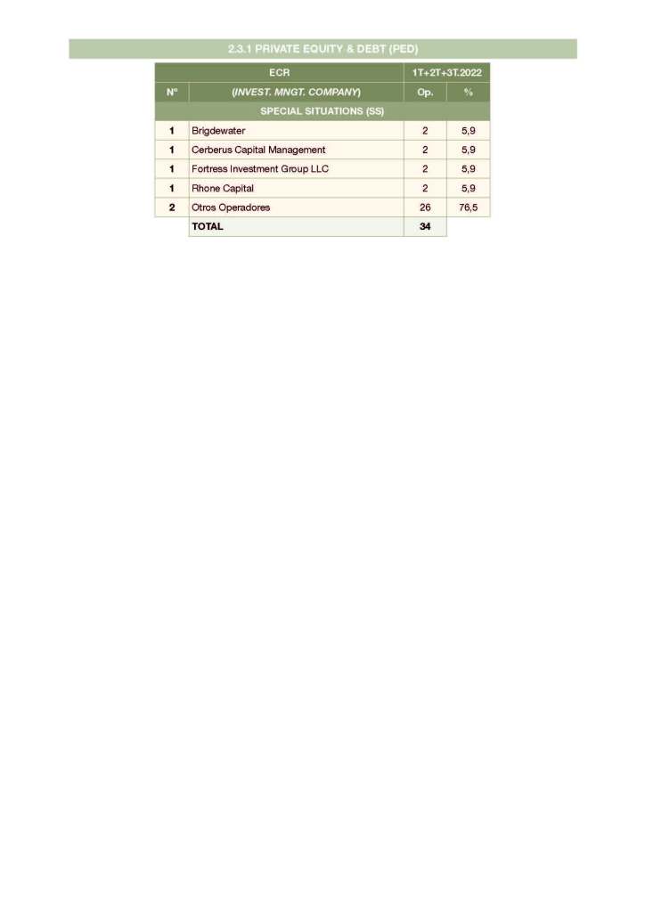 Presentamos el #Ranking (extracto) de #PrivateEquity & #Debt: #SitacionesEspeciales (#reestructuracion / #refinanciacion / #reorientacion) del 3T.2022, clasificado por el número de operaciones acumuladas sobre compañías españoles.