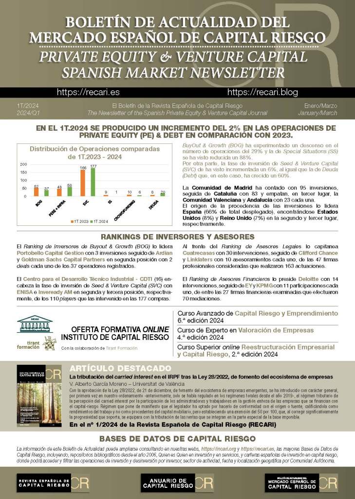 EN EL 1T.2024 SE PRODUCIDO UN INCREMENTO DEL 2% EN LAS OPERACIONES DE PRIVATE EQUITY (PE) & DEBT EN COMPARACIÓN CON 2023.