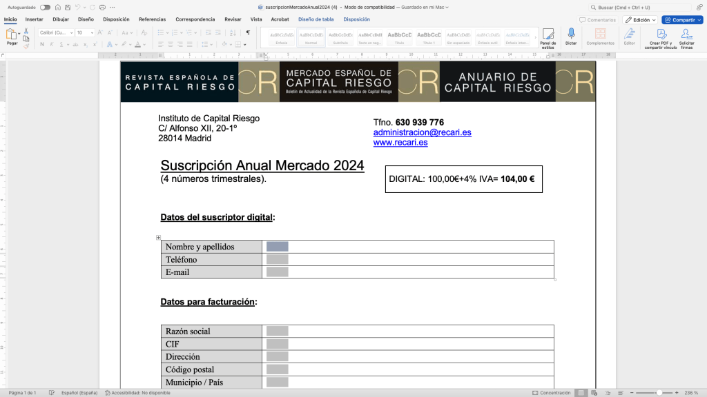 El Precio de esta propuesta es de 100 € / año, e incluye: