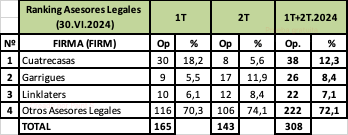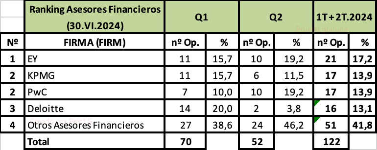 Igualmente mostramos los despachos profesionales que intervinieron en cada deal: – Ranking de Asesores Legales – Ranking de Asesores Financieros