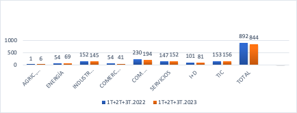 En la siguiente pantalla habremos de seleccionar el periodo enero – junio 2023.Seguidamente accedemos a una pantalla en donde se nos muestra, por trimestre, el número de #operaciones trimestrales realizadas por cada inversor sobre un #target español.