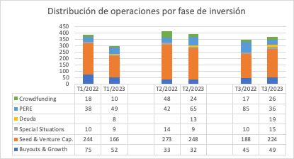 Podemos observar en la línea inferior de la tabla que número total de operaciones del 2T.2023 para esta fase de inversión ha sido de 32 y que, junto con las 54 consideradas en el primer trimestre, hacen un total de 86 deals acumulados en 2023 que han sido realizados por 70 #Inversores.