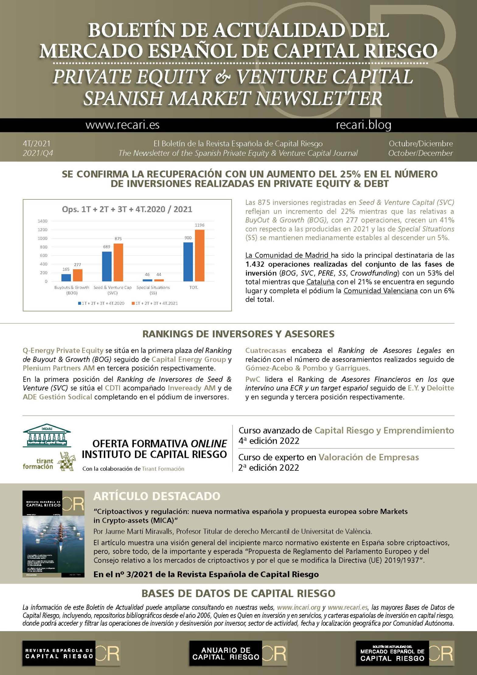 Portada del Boletín de Actualidad del Mercado Español de Capital Riesgo del 4T.2021 / Q4.2021 PE & VC Spanish Market Newsletter front page